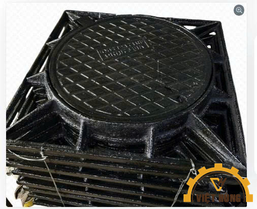 Nắp hố ga gang KT: 850x850x75mm, nắp D650mm tải trọng 12,5 tấn