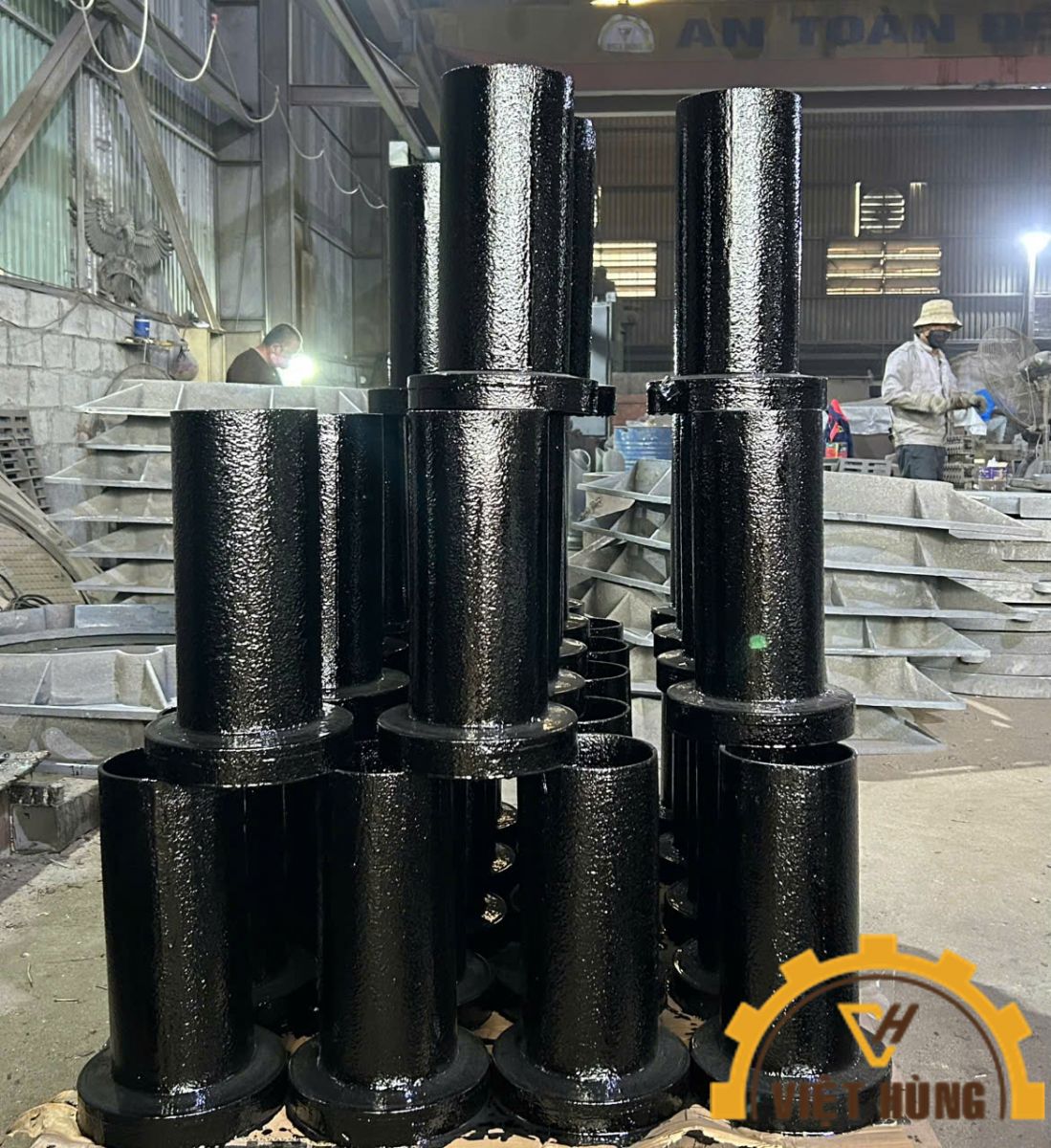 Sản phẩm Ống gang thoát nước, ống gang đúc, phễu thoát nước bằng gang được cung cấp tại xưởng sản xuất gang đúc Việt Hùng, địa chỉ: