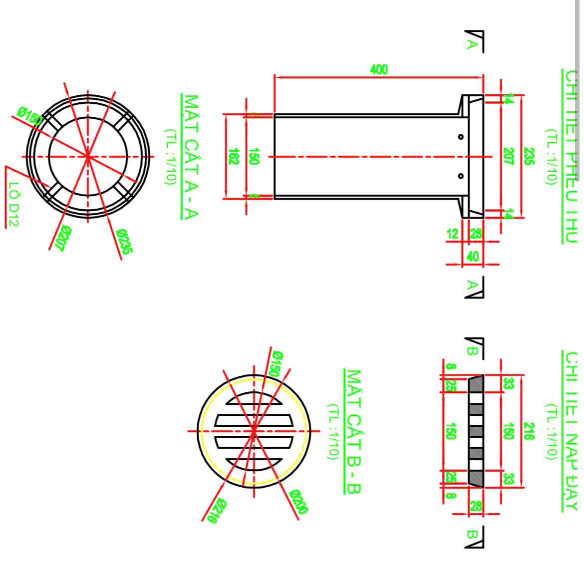 Ống gang thoát nước D162/150, L= 400mm và tấm lưới chắn rác được Việt Hùng sản xuất theo (yêu cầu bản vẽ) và cung cấp cho Gói thầu Thi công xây dựng bờ phải từ Km0+00 đến Km0+880 thuộc hạ tầng hồ chứa nước ngọt bờ sông Láng Thé đảm bảo an ninh nguồn nước các huyện Càng Long, Châu Thành & TP Trà Vinh (giai đoạn 1))